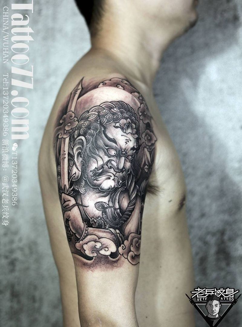 当前位置: 首页 >湖北省武汉市纹身店-武汉老兵纹身店纹身图案>大臂不动明王纹身作品纹身图片_成品手臂传统人物纹身图案