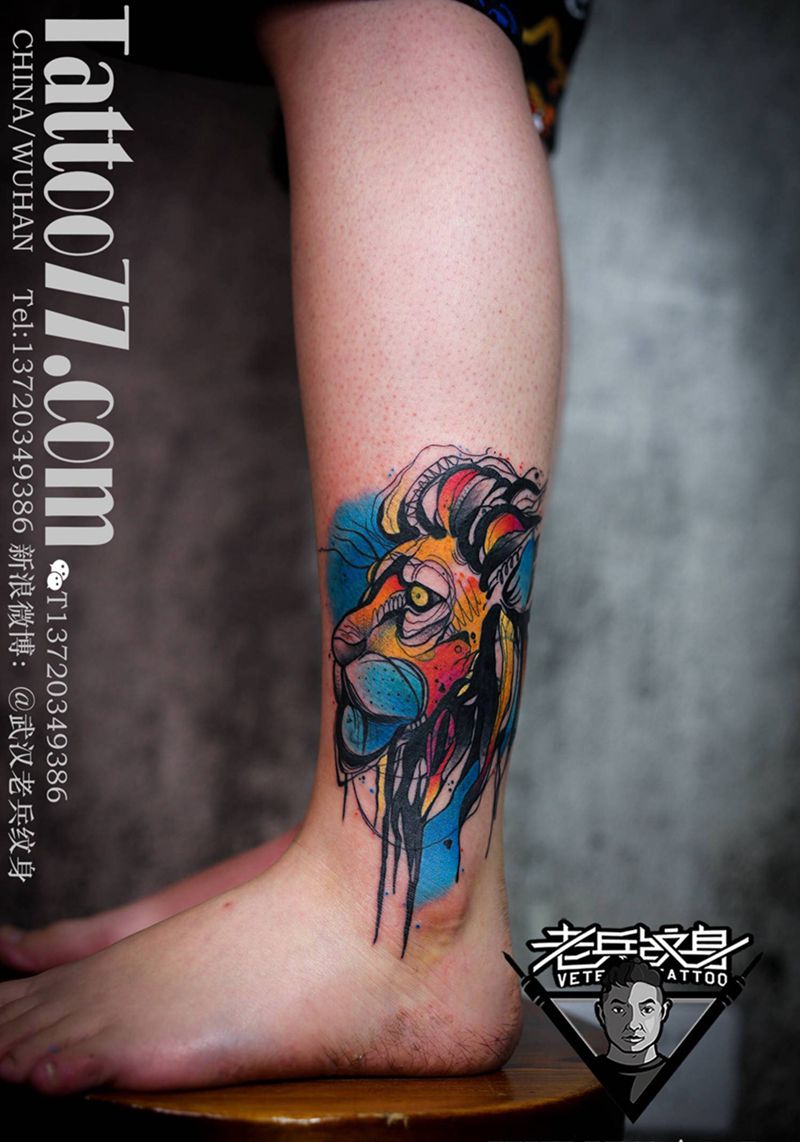当前位置: 首页 >湖北省武汉市纹身店-武汉老兵纹身店纹身图案>水彩狮子纹身图片_成品脚部欧美动物纹身图案