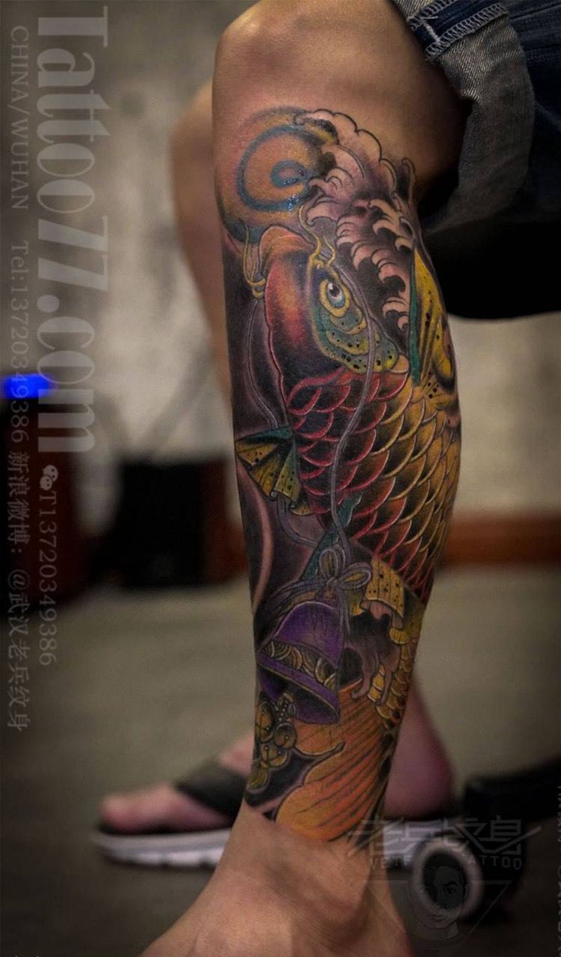 当前位置: 首页 >湖北省武汉市纹身店-武汉老兵纹身店纹身图案>小腿鲤鱼纹身纹身图片