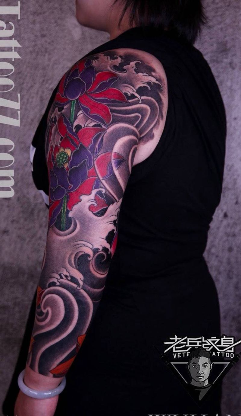 一组15张莲花纹身手