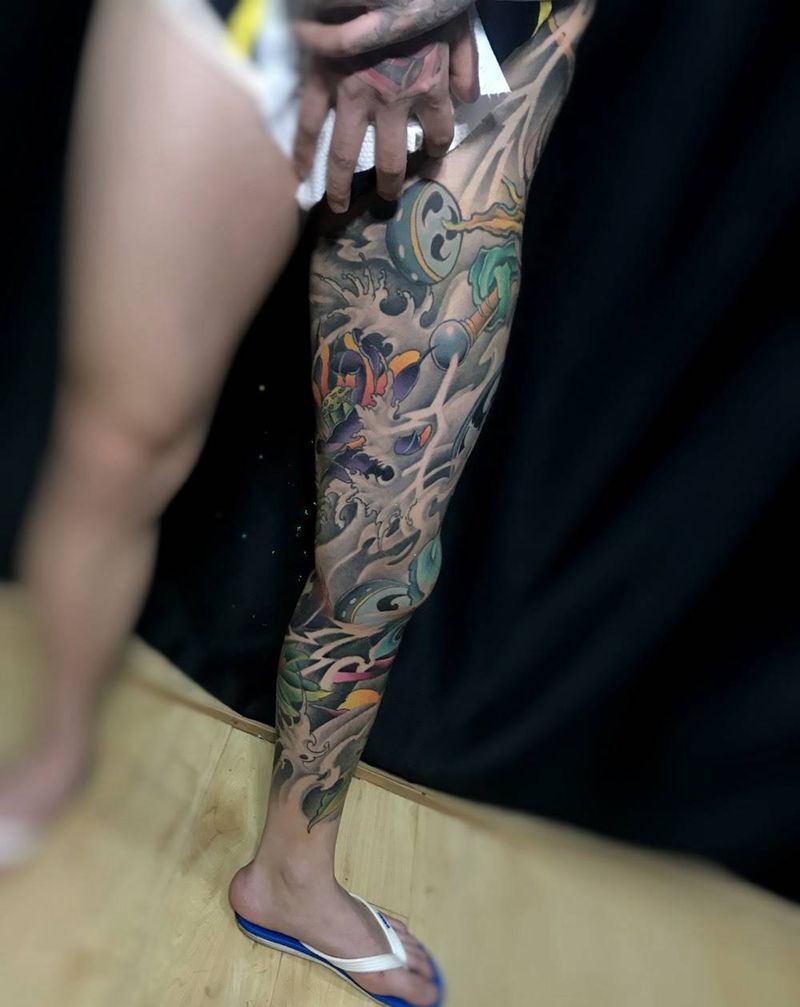 当前位置: 首页 >湖北省武汉市纹身店-武汉危笑刺青纹身图案>雷神花腿纹身图片_腿部脚部新传统重彩雷神花腿纹身图案