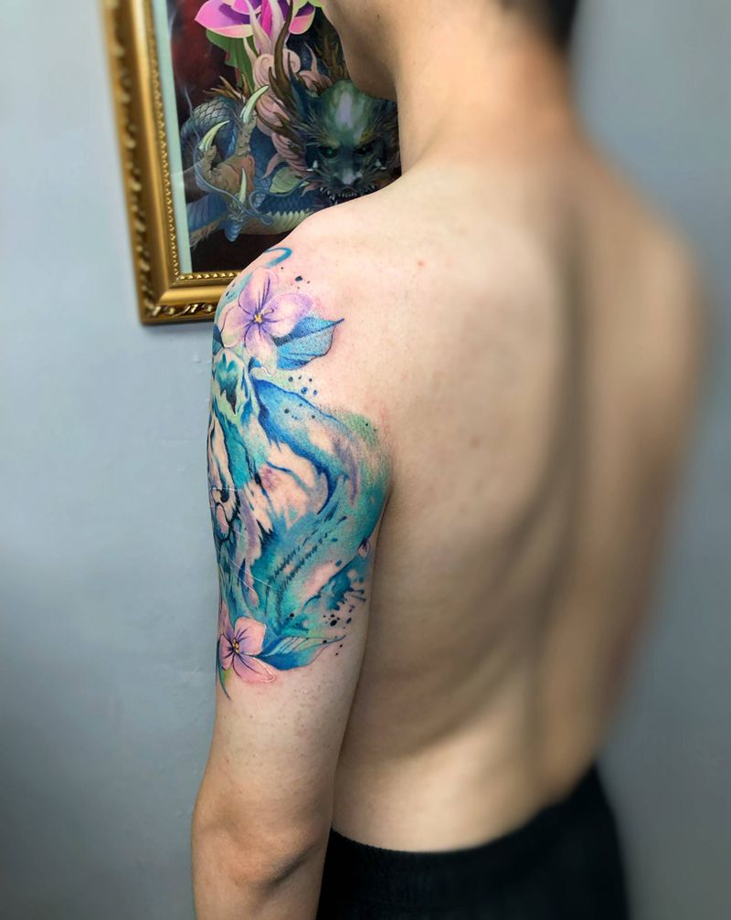 当前位置: 首页 >湖北省武汉市纹身店-武汉危笑刺青纹身图案>虎,老虎纹身图片_手臂手部水彩水墨老虎虎樱花纹身图案