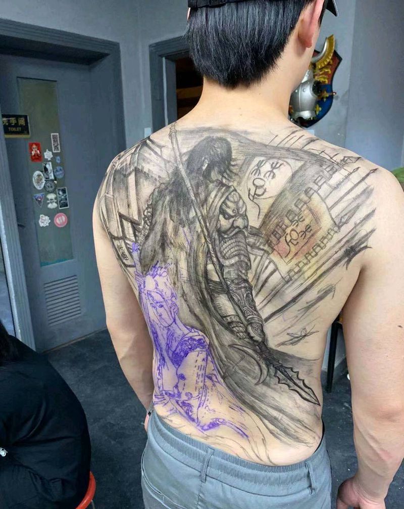 霸王别姬纹身图片_背部满背项羽虞姬纹身图案