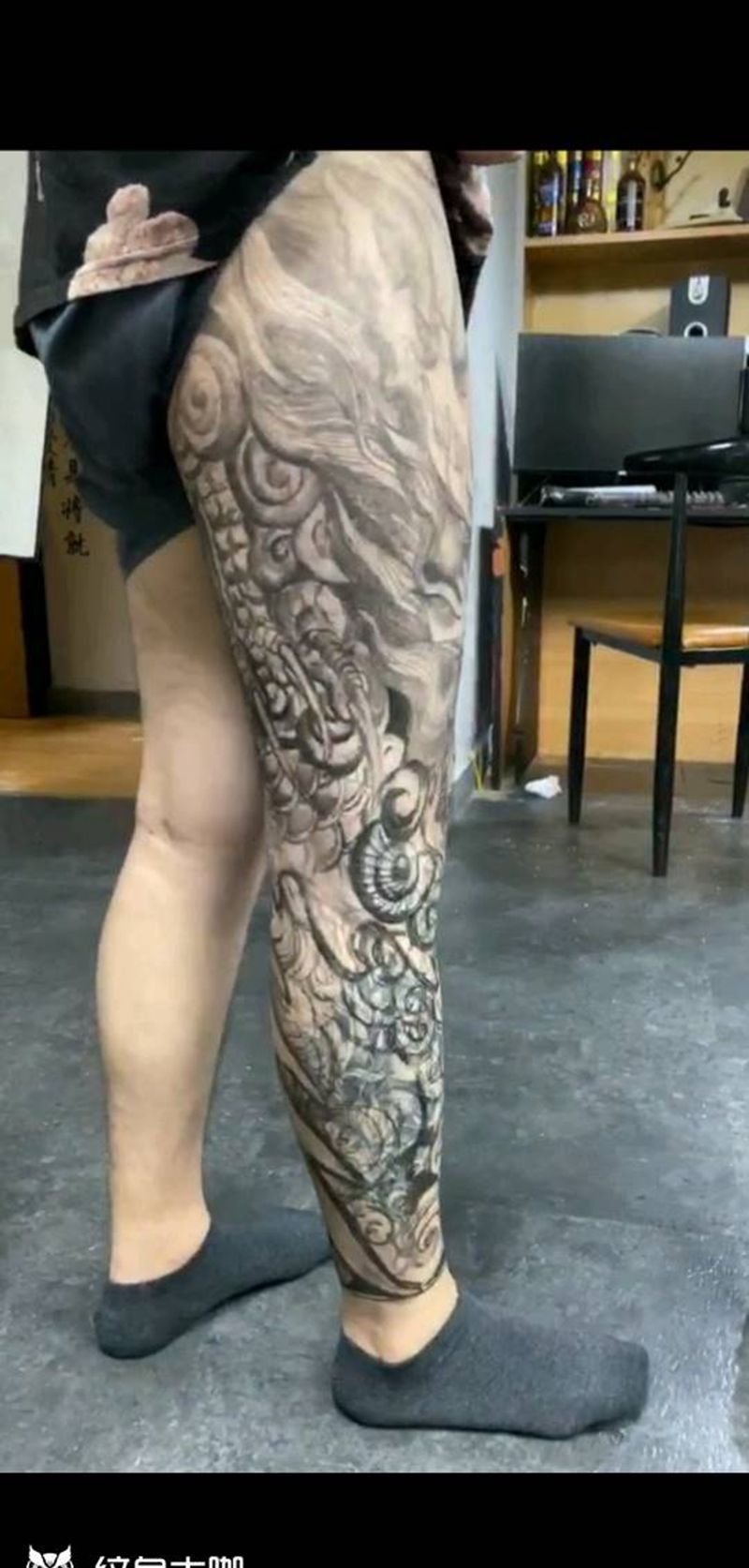 • T网红王老大花腿龙纹身图片_腿部新传统纹身图案