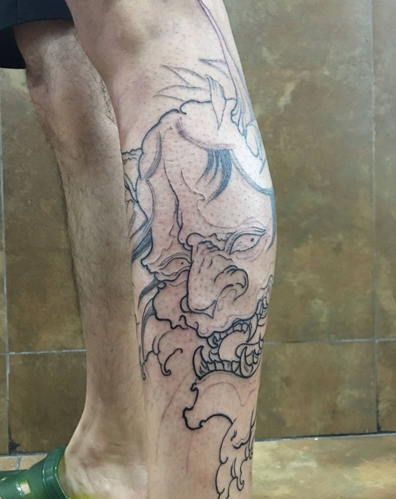 • T网红王老大花腿龙纹身图片_腿部新传统纹身图案