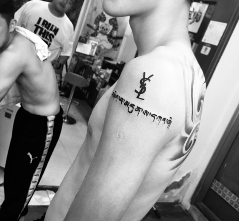 当前位置: 首页 >湖北省武汉市纹身店-伍刺青纹身图案>梵文加英文纹身图片_肩部纹身图案