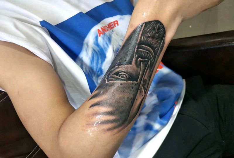 当前位置: 首页 >湖北省武汉市纹身店-精雕纹图纹身图案>斯巴达纹身图片_手臂欧美写实纹身图案