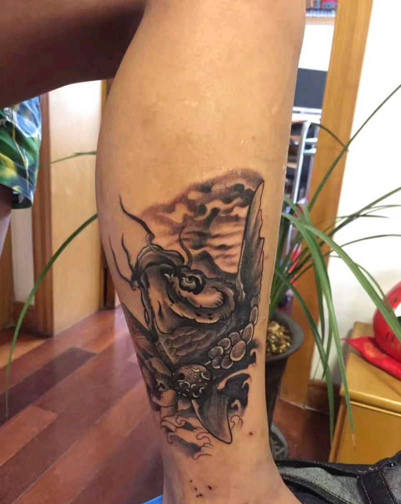 • T网红王老大花腿龙纹身图片_腿部新传统纹身图案