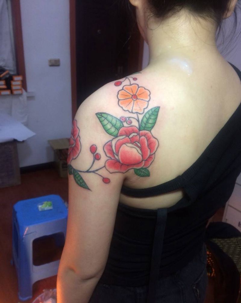 • 女性大花胸纹身_43张霸气漂亮的女性大花胸纹身图案作品