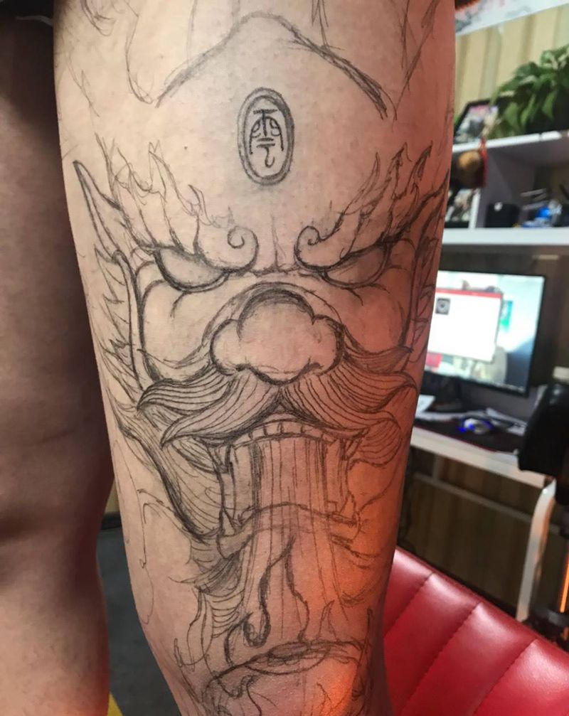 • T网红王老大花腿龙纹身图片_腿部新传统纹身图案