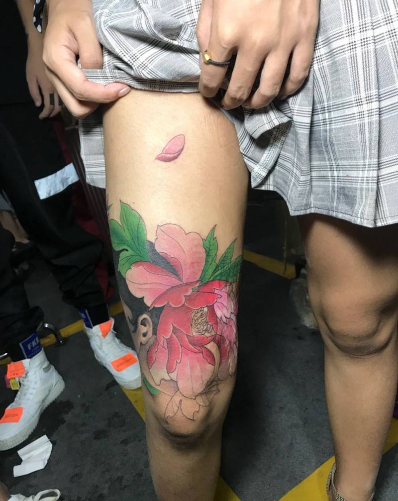 • T网红王老大花腿龙纹身图片_腿部新传统纹身图案