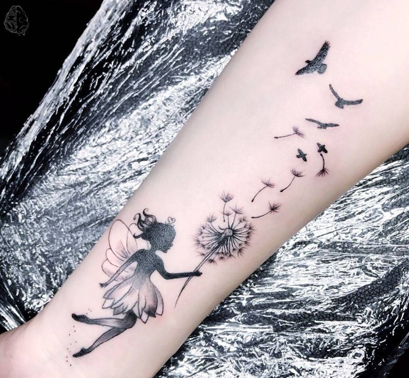 遮盖精灵蒲公英纹身图片_清新纹身图案