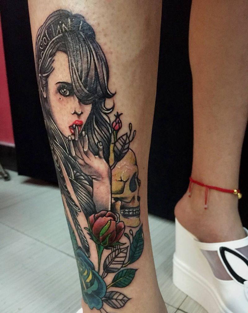• T网红王老大花腿龙纹身图片_腿部新传统纹身图案