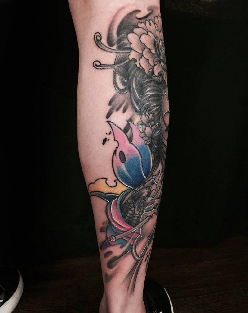 • T网红王老大花腿龙纹身图片_腿部新传统纹身图案
