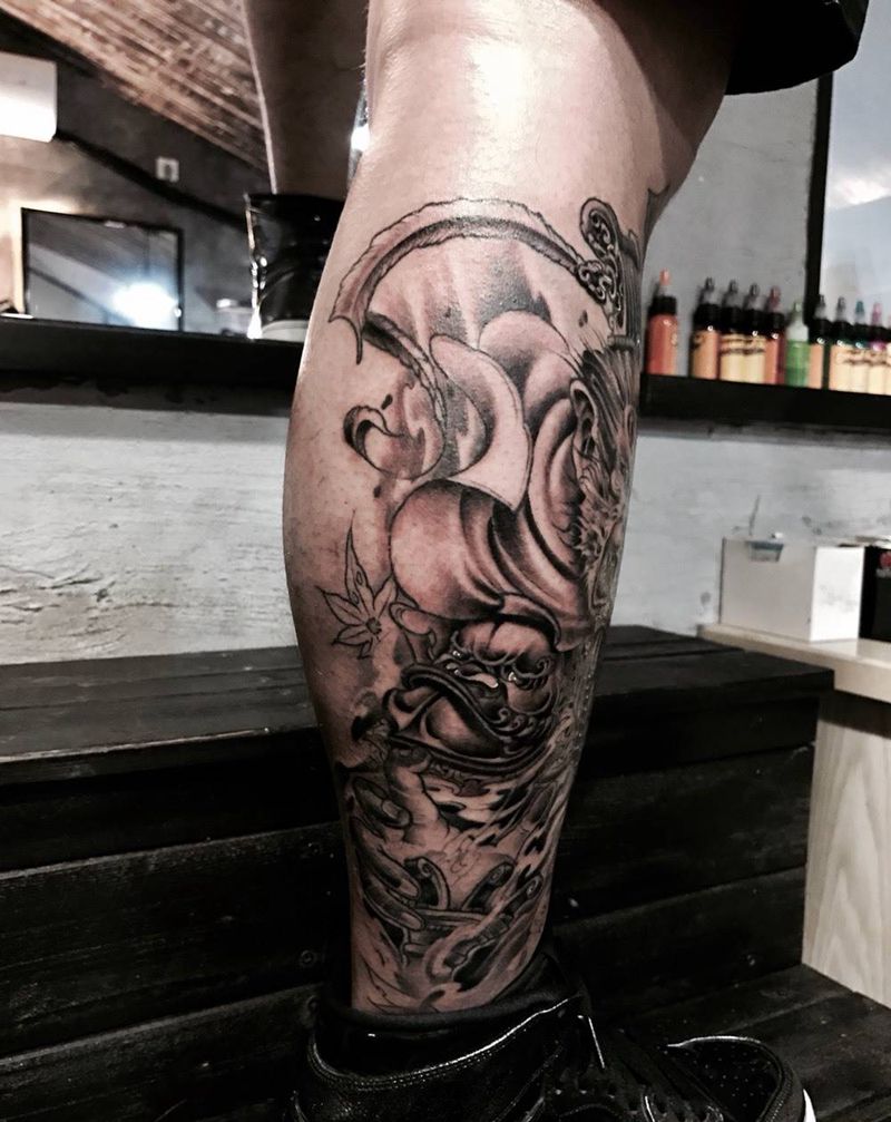 • T网红王老大花腿龙纹身图片_腿部新传统纹身图案