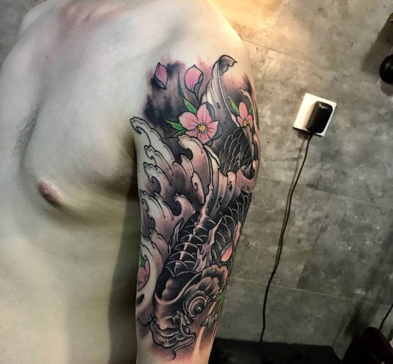 • 纹身吧推荐的披肩图腾半胛纹身图案作品展示