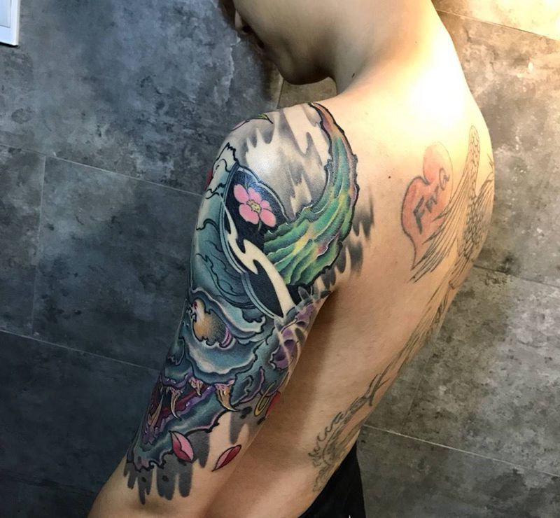 • 纹身吧推荐的披肩图腾半胛纹身图案作品展示