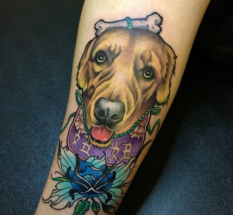 • T网红王老大花腿龙纹身图片_腿部新传统纹身图案