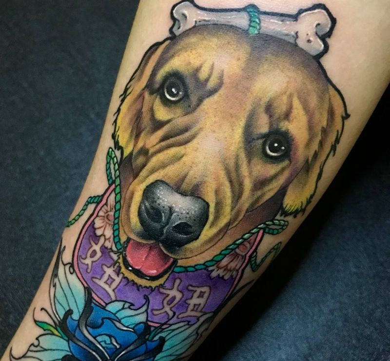 • T网红王老大花腿龙纹身图片_腿部新传统纹身图案