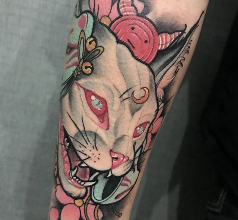 • T招财猫纹身图片