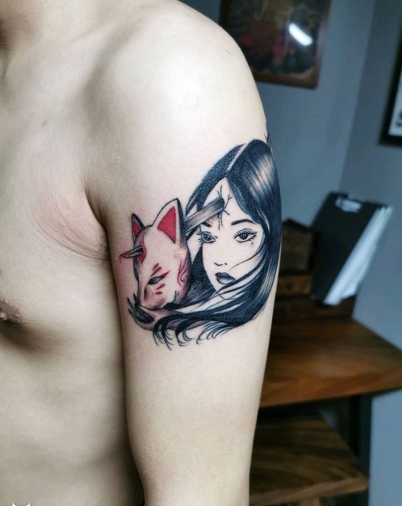 当前位置: 首页 >湖北省武汉市纹身店-释魂刺青纹身图案>暗黑系人物面具纹身图片_手臂欧美写实纹身图案