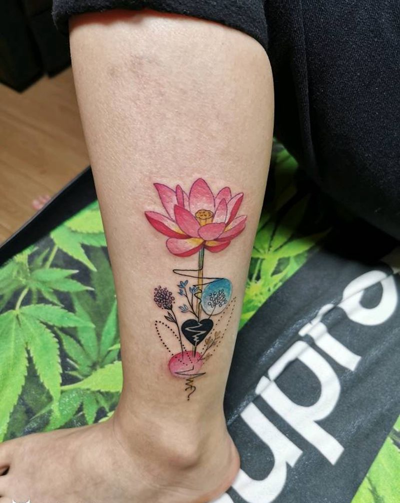 当前位置: 首页 >湖北省武汉市纹身店-释魂刺青纹身图案>莲花纹身图片_腿部几何水彩纹身图案