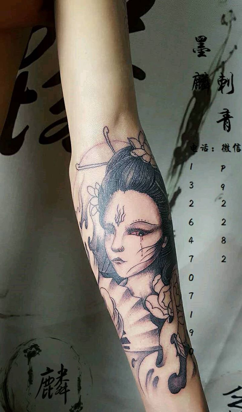 当前位置: 首页 >湖北省武汉市纹身店-释魂刺青纹身图案>小臂艺妓未完成纹身图片