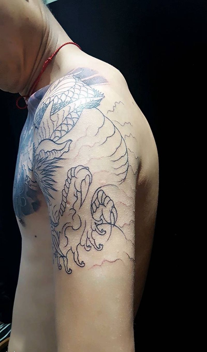 当前位置: 首页 >湖北省武汉市纹身店-释魂刺青纹身图案>龙半甲未完成纹身图片