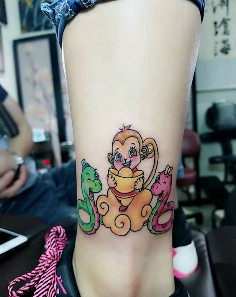 • T网红王老大花腿龙纹身图片_腿部新传统纹身图案