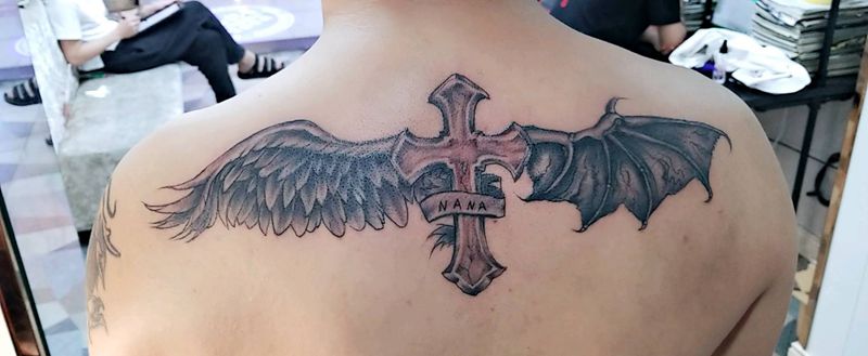 黑灰满背纹身图案