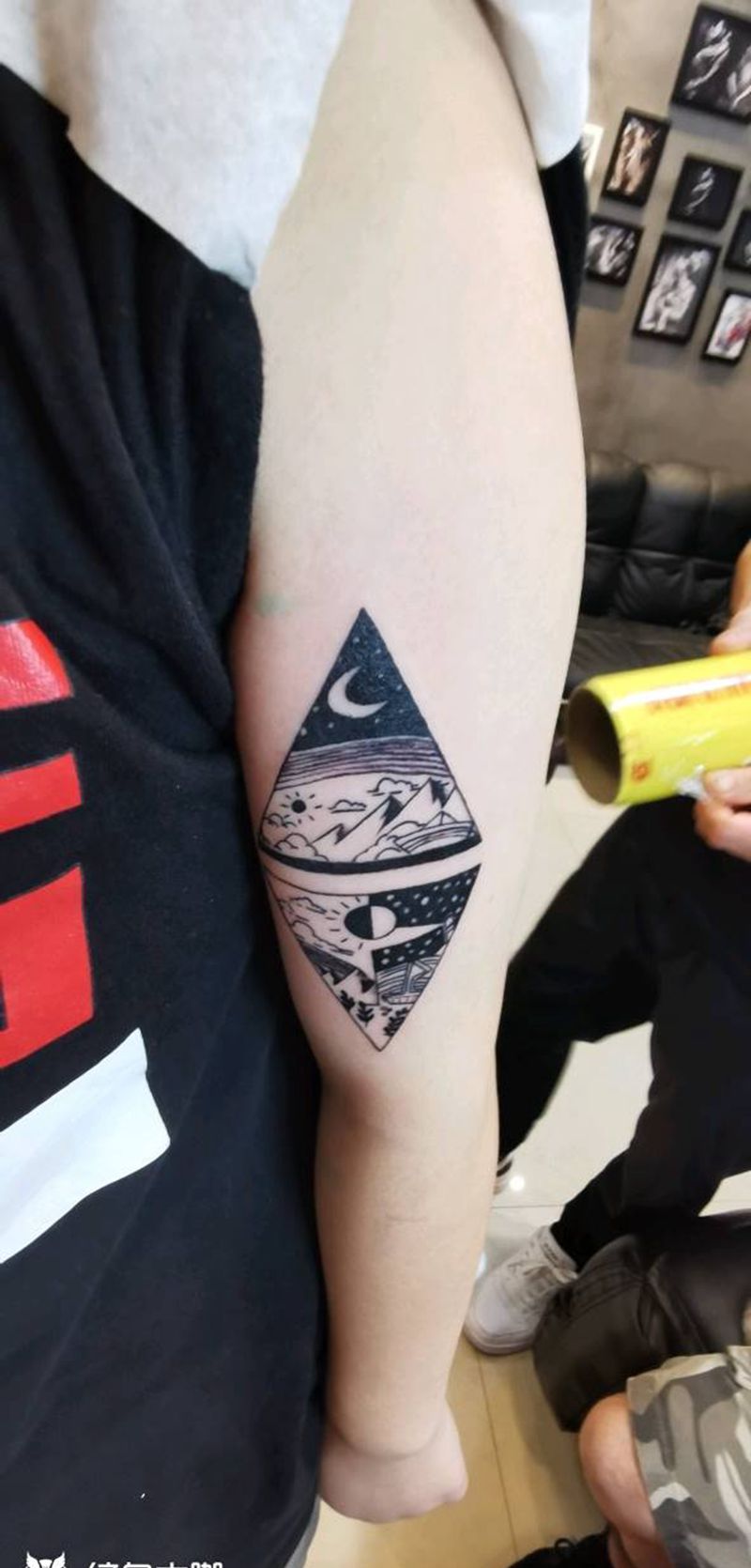 当前位置: 首页 >湖北省武汉市纹身店-释魂刺青纹身图案>日月星辰纹身图片_手臂点刺图腾纹身图案