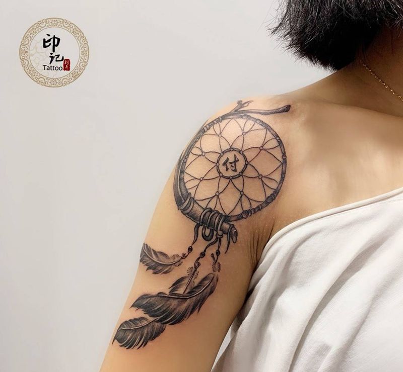捕梦网纹身图片_肩部纹身图案