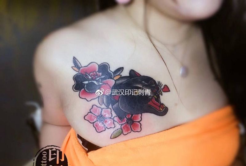 • 女性大花胸纹身_43张霸气漂亮的女性大花胸纹身图案作品