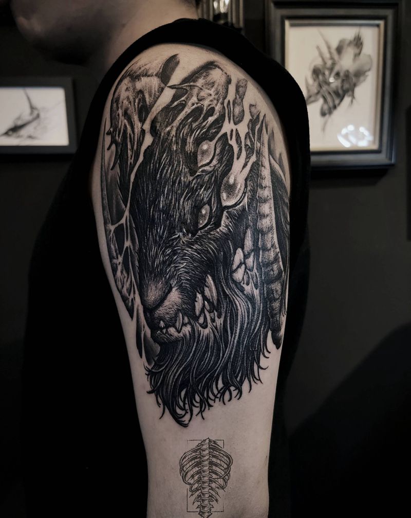 当前位置: 首页 >湖北省武汉市纹身店-暗礁刺青纹身图案>暗黑羊头纹身图片_暗黑纹身图案