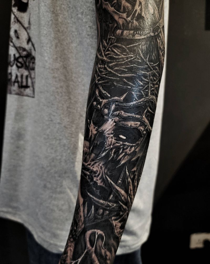 遮盖作品纹身图片_手臂暗黑纹身图案