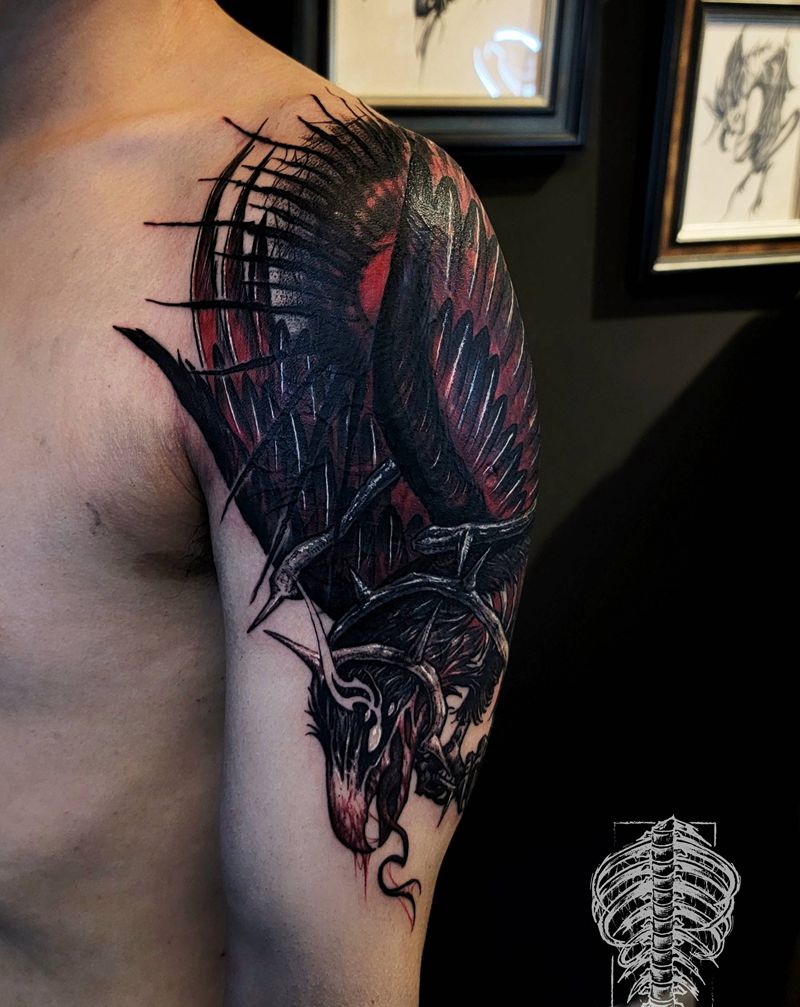 • 纹身吧推荐的披肩图腾半胛纹身图案作品展示