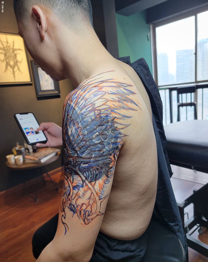 • 纹身吧推荐的披肩图腾半胛纹身图案作品展示