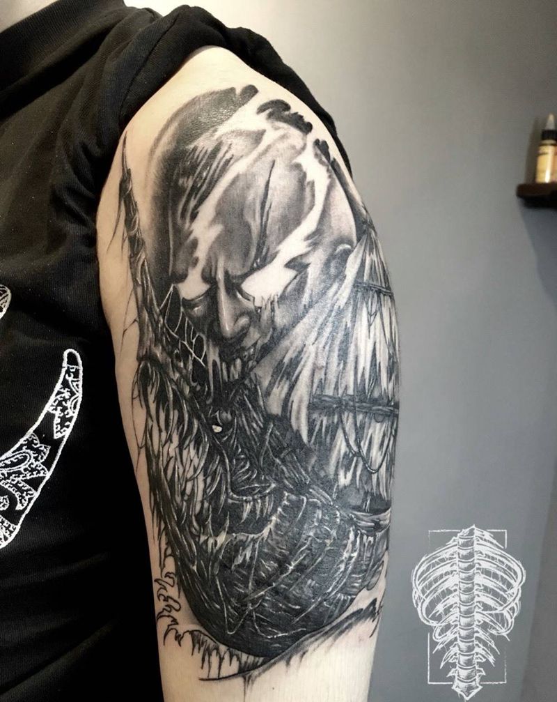 • 纹身吧推荐的披肩图腾半胛纹身图案作品展示