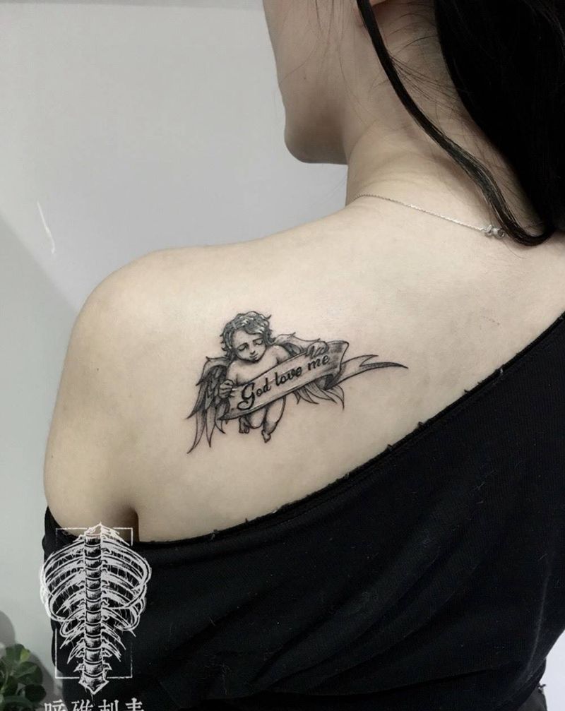 原创小天使纹身图片_成品原创欧美背部人物纹身图案