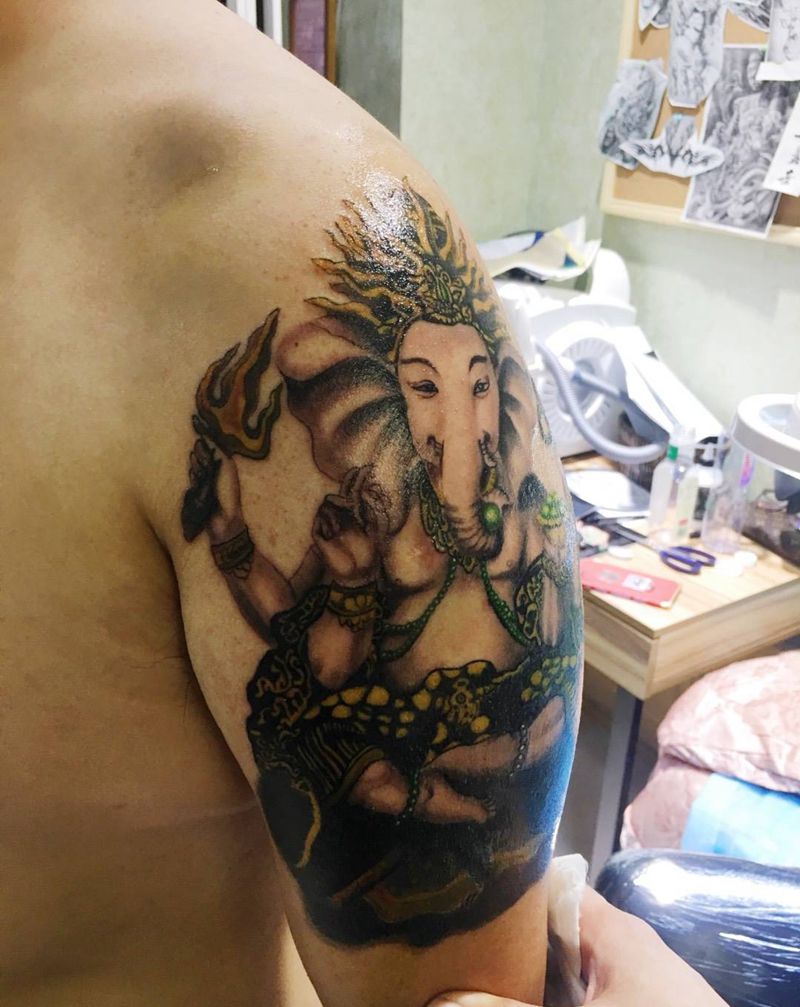 当前位置: 首页 >湖北省武汉市纹身店-墨工坊刺青纹身店纹身图案>象神纹身图片