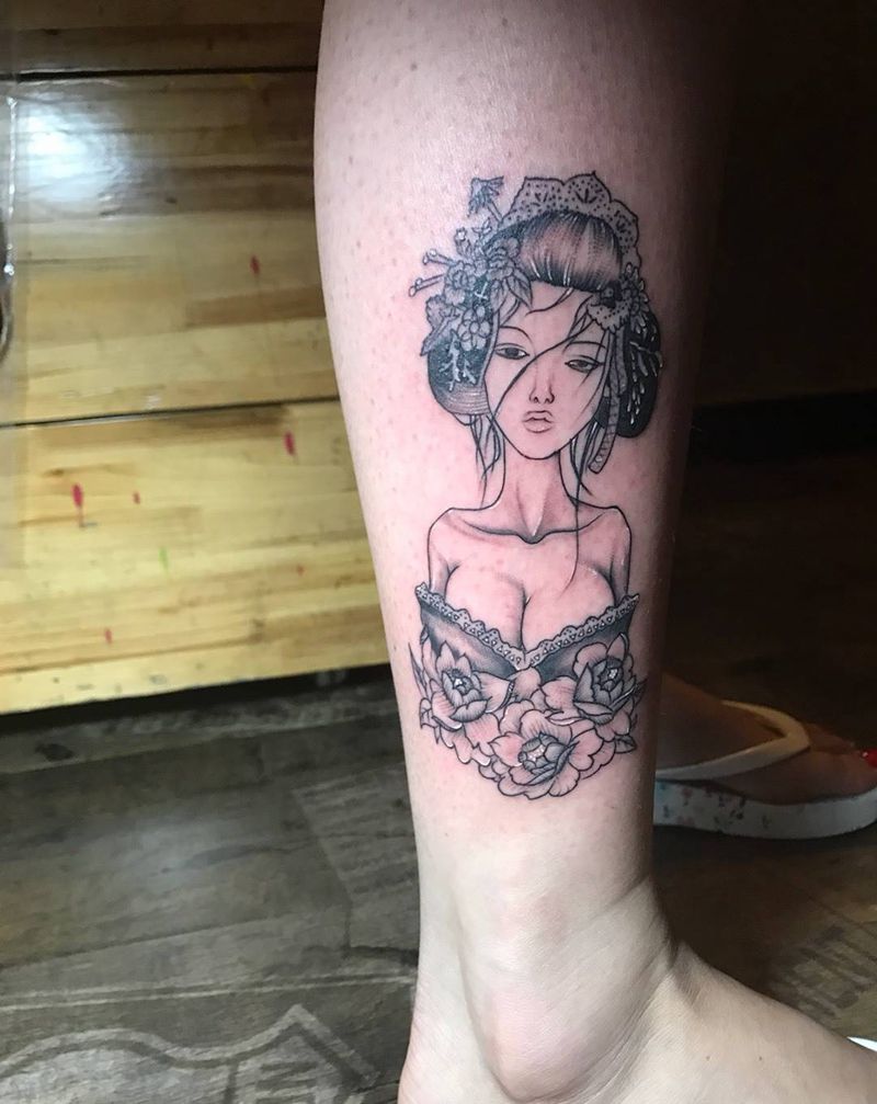 • T包小腿吹火男+阿多福纹身图片_腿部老传统新传统吹火男阿