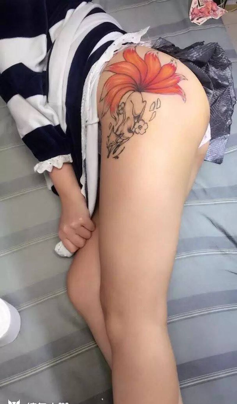 九尾狐纹身图片_臀部九尾狐纹身图案