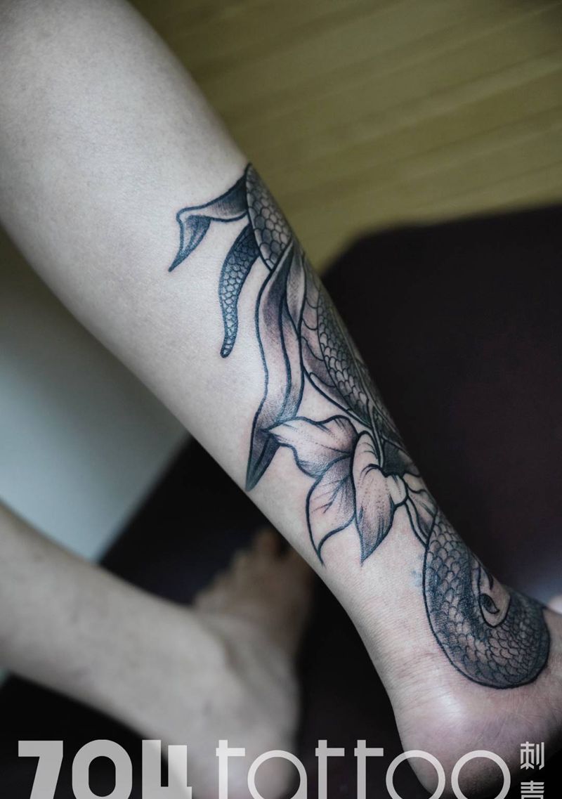 • T网红王老大花腿龙纹身图片_腿部新传统纹身图案