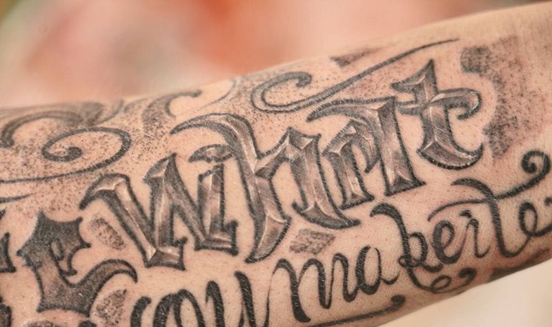 当前位置: 首页 >湖北省荆州市纹身店-704tattoo刺青纹身图案>花体字纹身图片_手臂花体字纹身图案