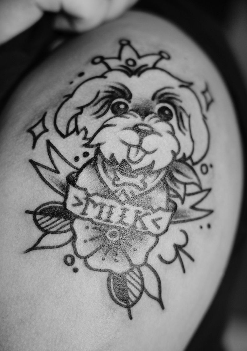 客人家小狗原创纹身纹身图片_手臂Old School纹身图案