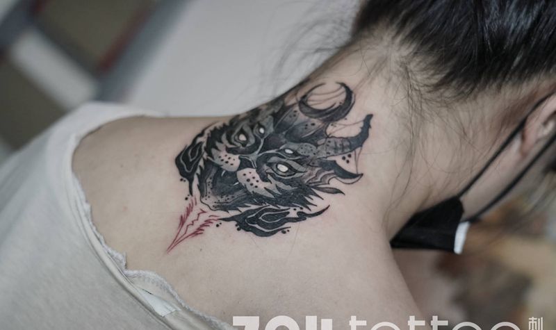 • 纹身吧推荐的披肩图腾半胛纹身图案作品展示