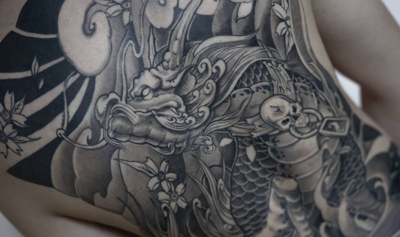• T云龙九郎纹身图片_背部老传统云龙九郎纹身图案