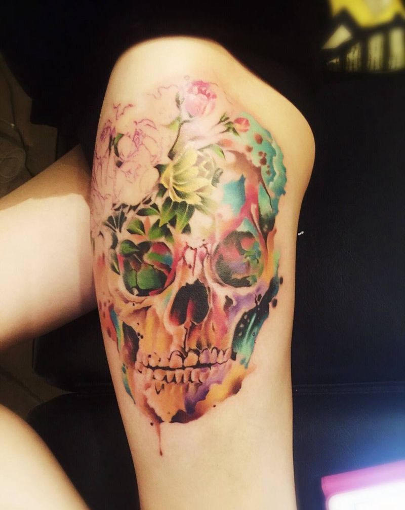 当前位置: 首页 >湖北省荆门市纹身店-纹人墨刻纹身图案>骷髅花纹身图片