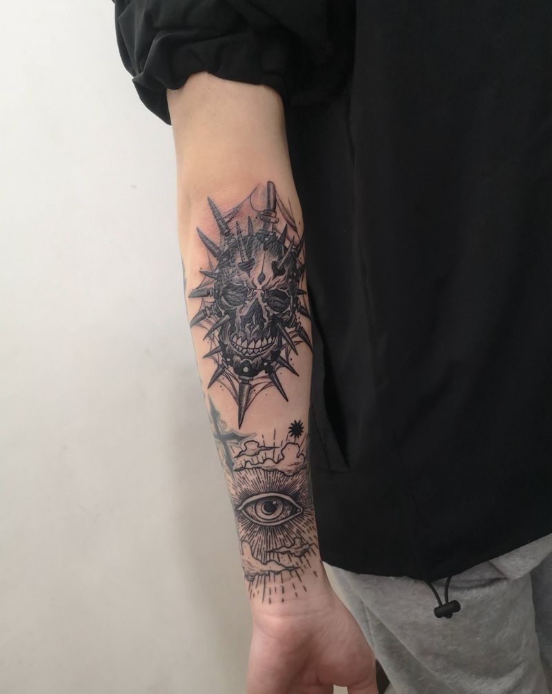 当前位置: 首页 >湖北省十堰市纹身店-刺魂纹身总店纹身图案>店内作品纹身图片_手臂新传统纹身图案