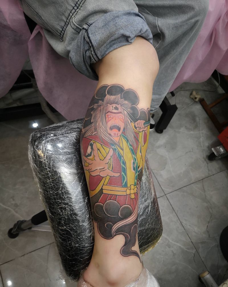 • T包小腿吹火男+阿多福纹身图片_腿部老传统新传统吹火男阿